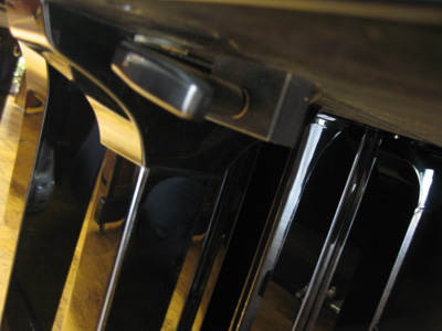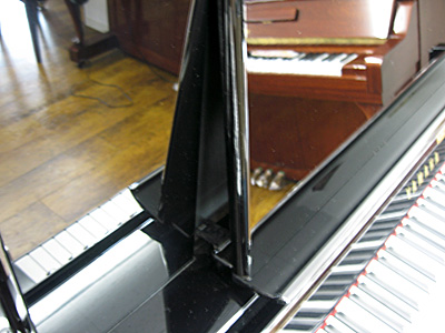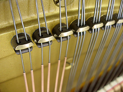 | 真ん中のペダルは低音のみ響かせる独立ダンパー | 弦を抑える方式はアグラフです |