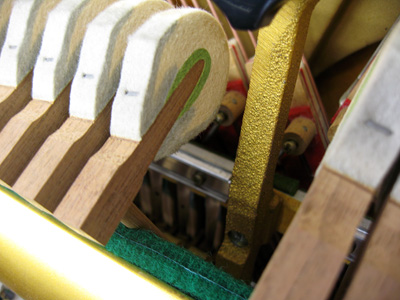 | オールアンダーフェルト方式です | 内部のアクションです。スムーズな連打を可能に。 |