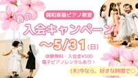 3歳〜大人まで 1回(30分)年40回 月謝¥7,000〜 春の入会キャンペーン 無料体験レッスン受付中! ![]() 詳細はコチラから |